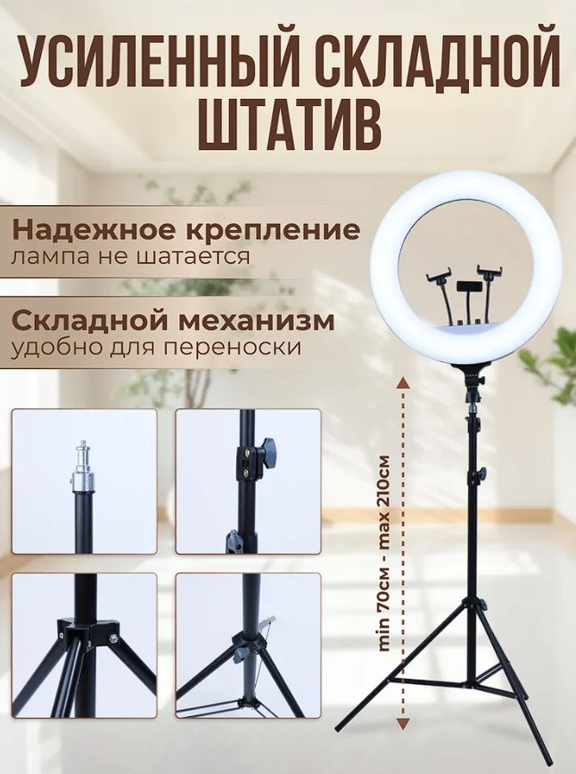 Отзывы на Профессиональная кольцевая лампа 45 см с усиленным штативом LED RL-18. Кольцевая лампа с пультом управления, сумкой для переноски и усиленным штативом