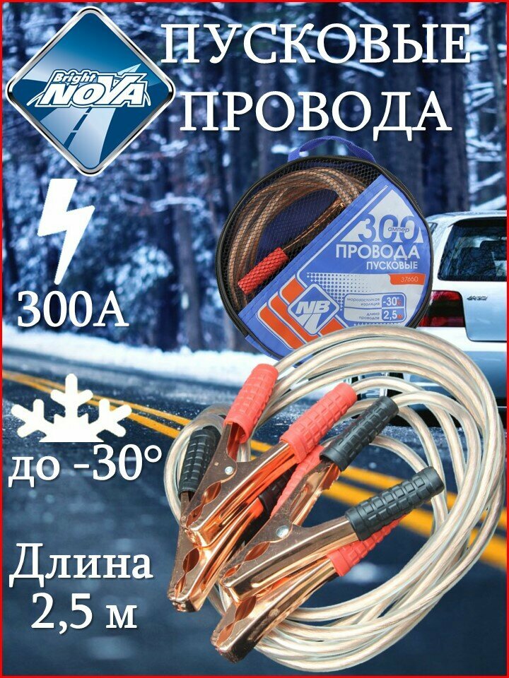 10 цен на Nova Bright Пусковые провода Nova Bright, 300 А, с прозрачной изоляцией, в сумке, 2.5 м
