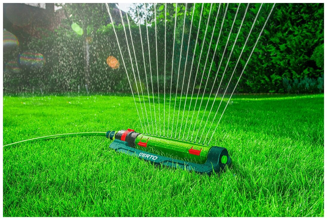 Отзывы на Дождеватель маятниковый, сектор полива до 418 квадратных метров, 18 форсунок VERTO 15G772
