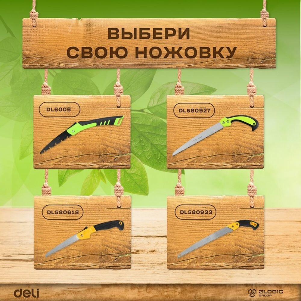 Садовая пила складная Deli DL6006 180мм, сталь 65MN, шаг зубьев 7 TPI