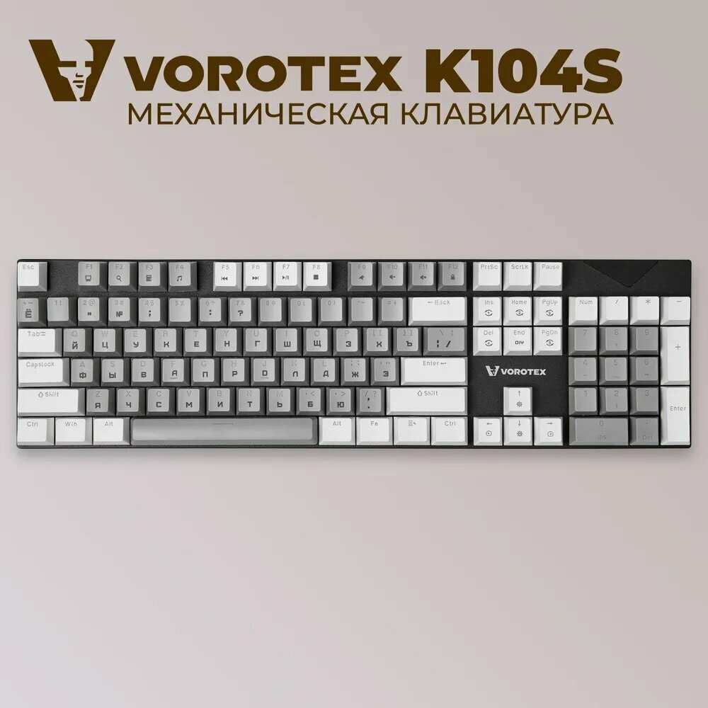 Клавиатура игровая проводная VOROTEX K104S Red Switch, русская раскладка (Серый, белый) информация:
