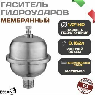 Отзывы на Гаситель гидроударов ESSAN, мембранный компенсатор гидроударов 0,162л, квартирный компенсатор 1/2", нержавейка