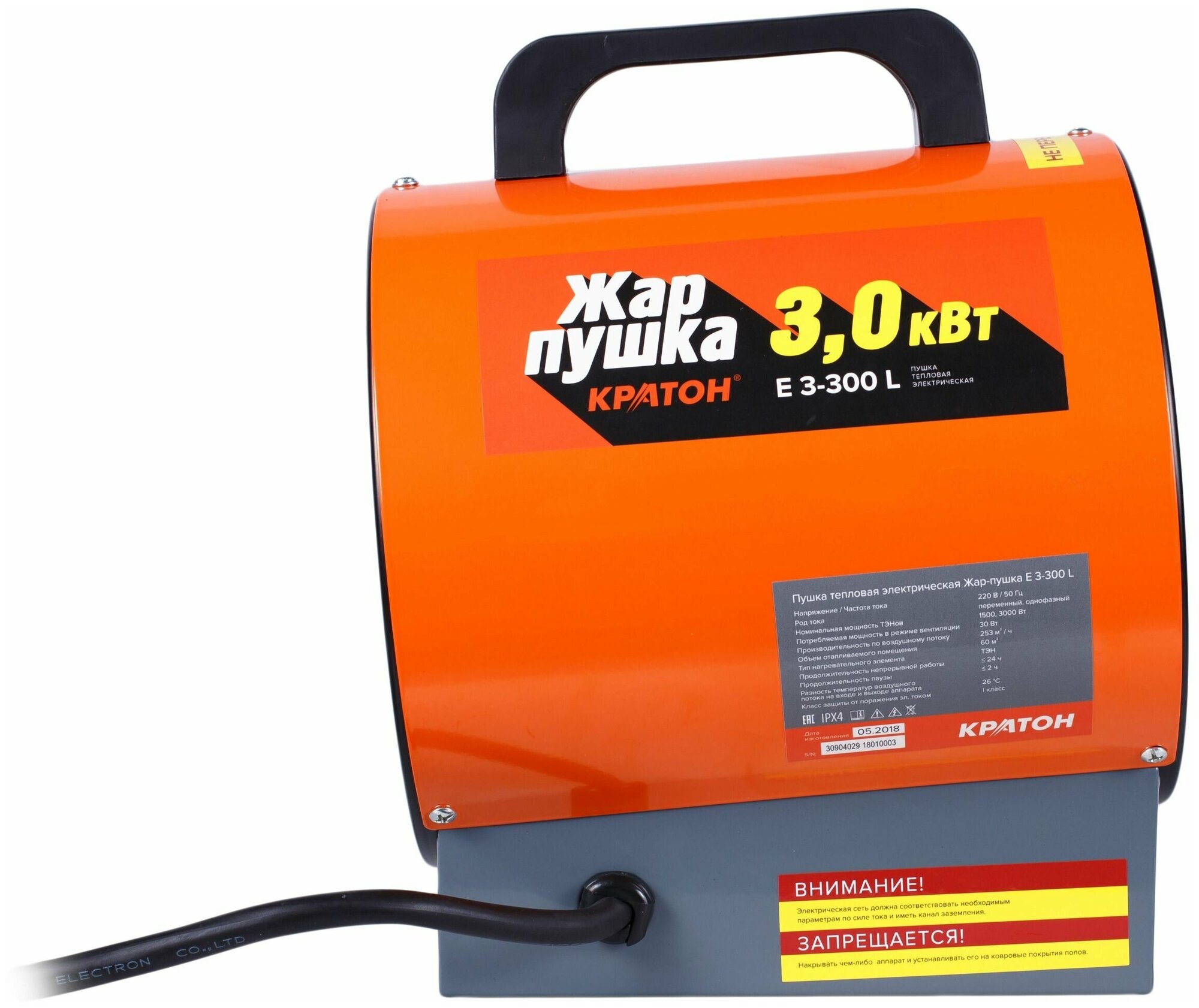Пушка тепловая электрическая Кратон Жар-пушка Е 3-300 L, мощность 3 кВт, площадь отапливаемого помещения 30 кв.м.