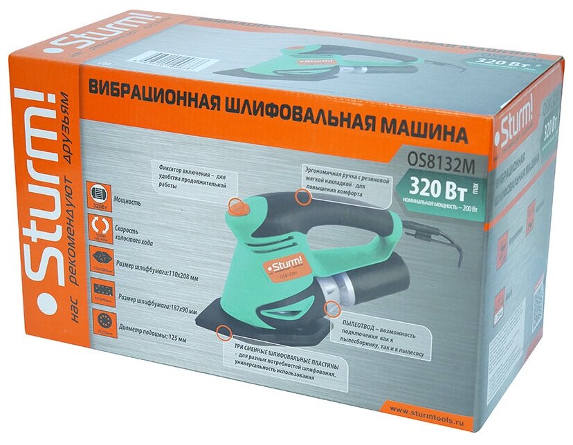 Sturm OS8132M Вибрационная шлифмашина , 320 Вт, 10000об/мин, 90x187/125/110x208 мм, OS8132M информация: