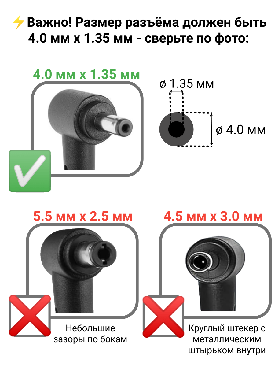 | Разъемы | 4.0 x 1.35 мм |