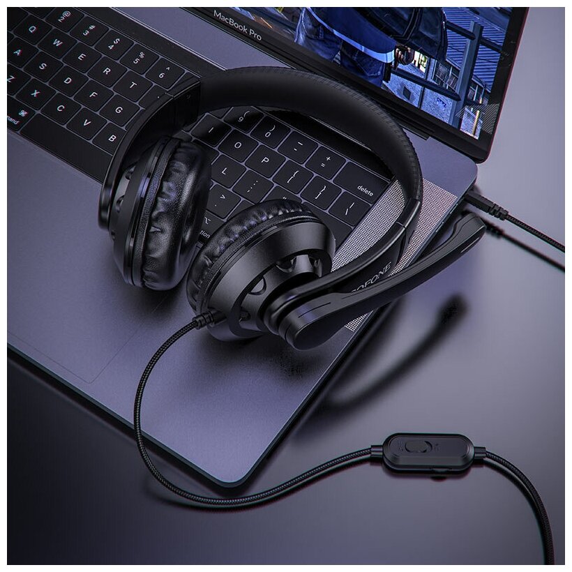 Наушники проводные игровые с микрофоном Borofone BO102, черный