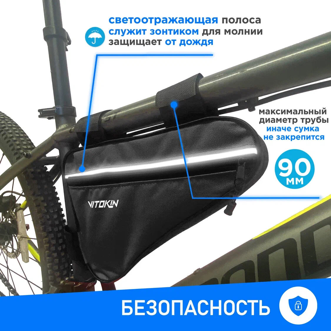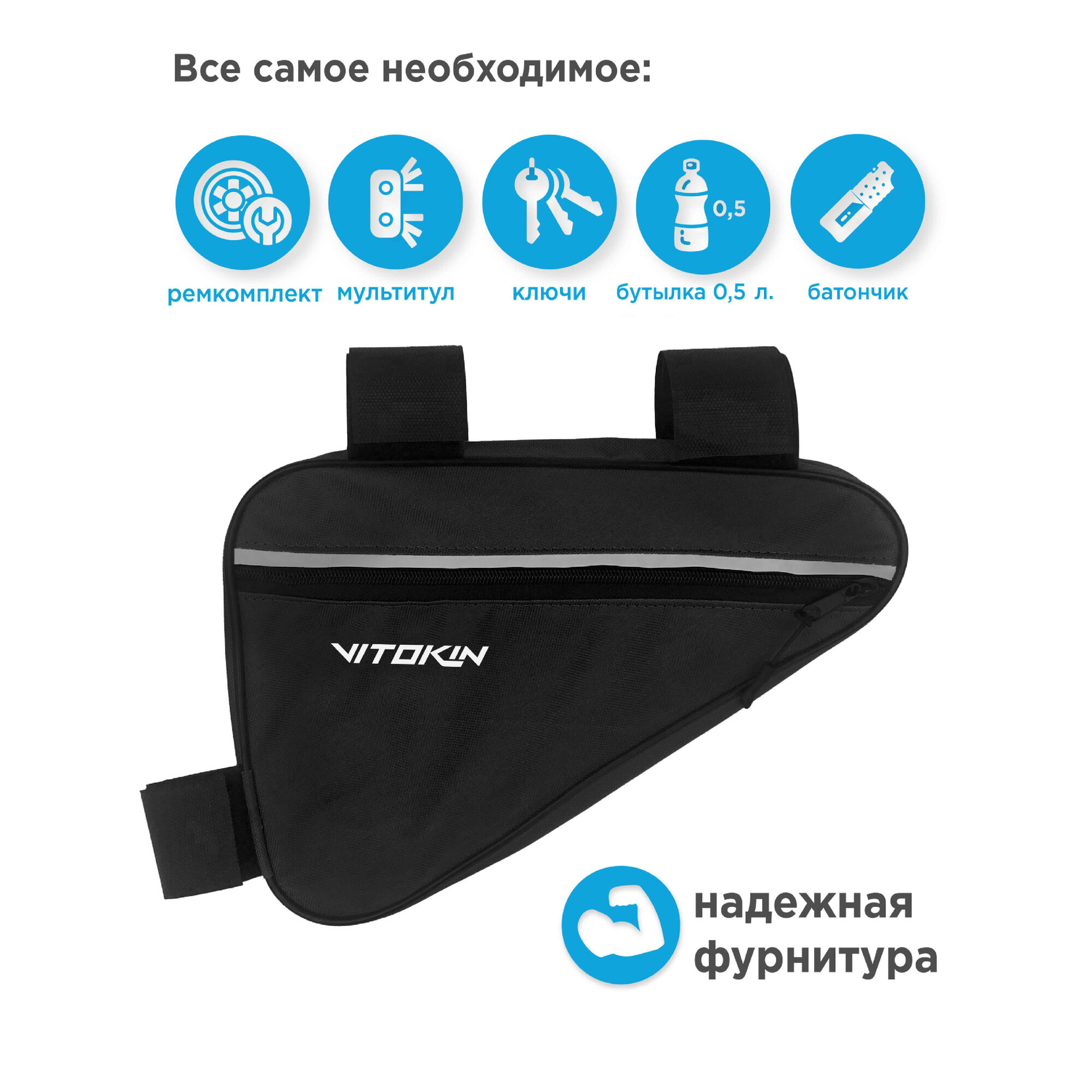 Велосумка под раму велосипеда, сумка велосипедная треугольная VITOKIN, черная информация: