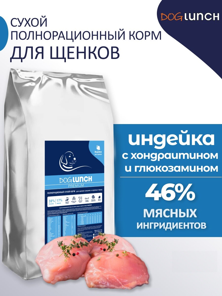 Dog Lunch Сухой полнорационный корм для щенков средних и крупных пород DogLunch Premium с индейкой 1,5 кг