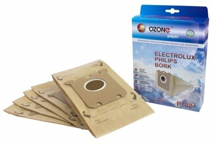 Пылесборник OZONE P-02 для пылесоса ELECTROLUX, 5 шт., бумажные (тип оригинального мешка: S-Bag)