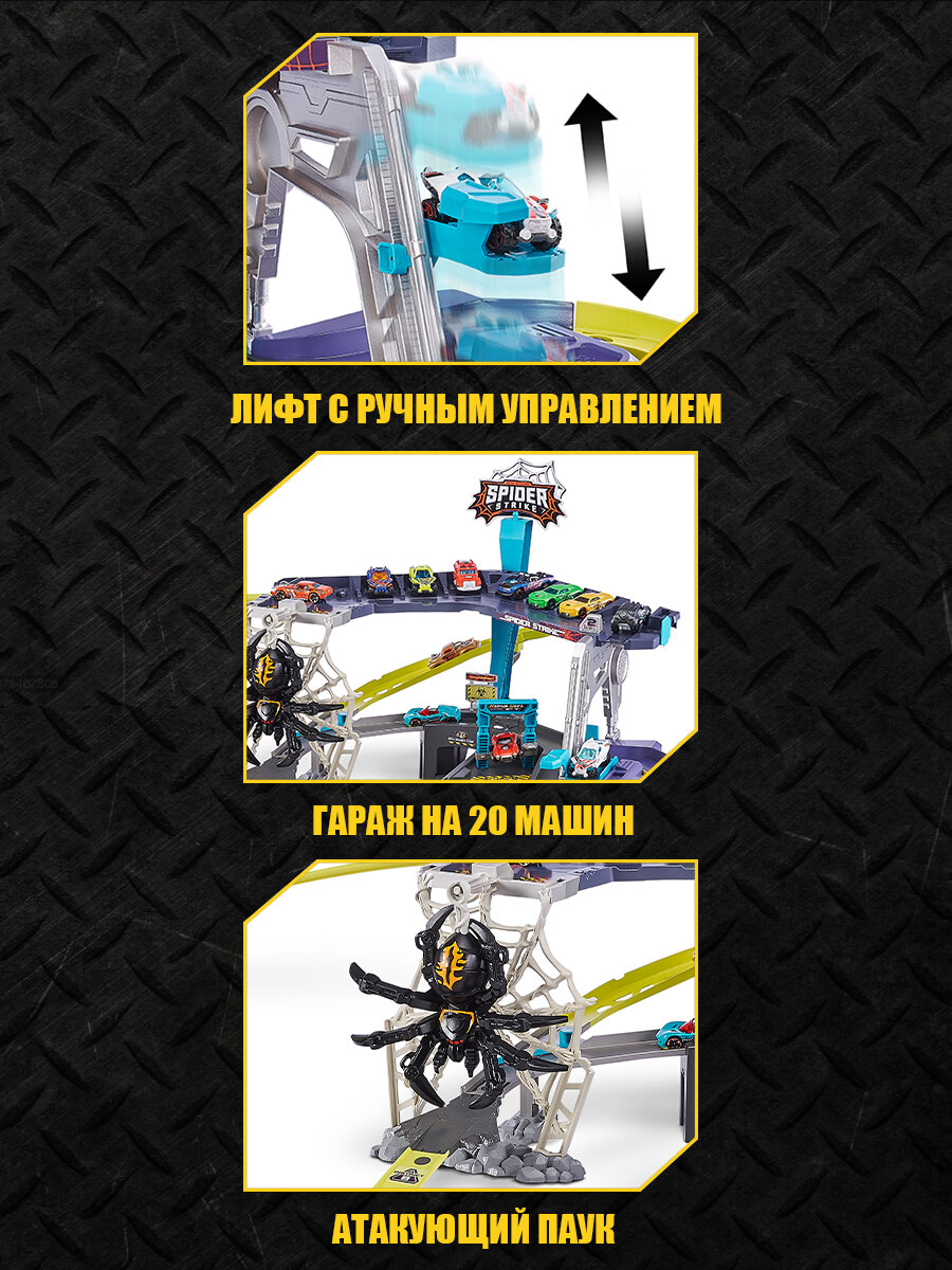 Игровой набор ZURU METAL MACHINES Spider Strike Garage / Трек Паучий удар с гаражом и машинками, высота трека 38 см, игрушки для мальчиков, 6725