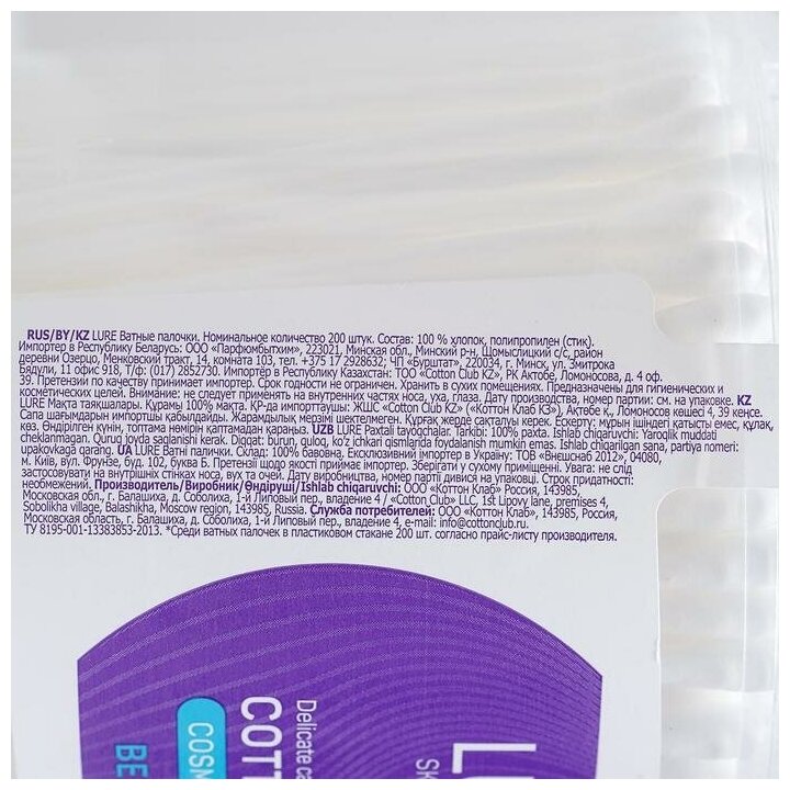 LURE Ватные палочки стакан 200шт информация: