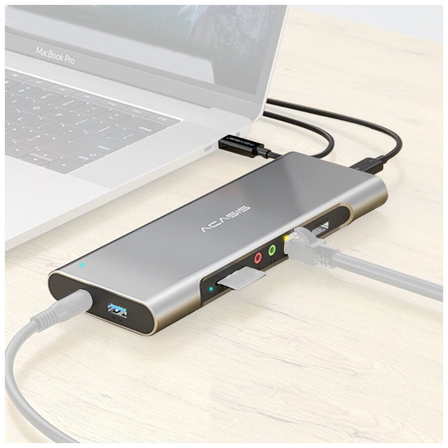 10 цен на Хаб Acasis CM050 USB3.1 Docking Station 10 in 1 Type-C HUB 8K Expansion Dock SD/TF Card Reader Gray