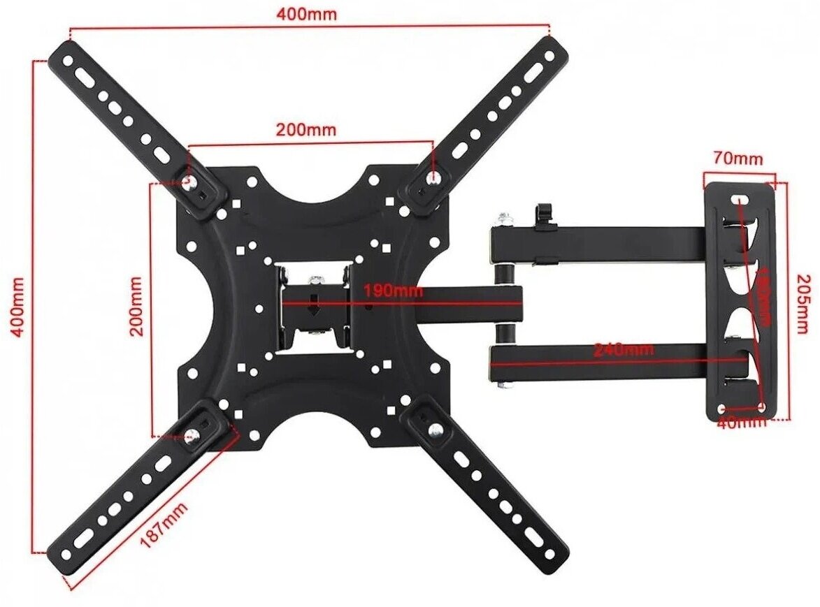 Настенный наклонно-поворотный кронштейн для ТВ X-400 (Черный). Диагональ от 32 до 58
