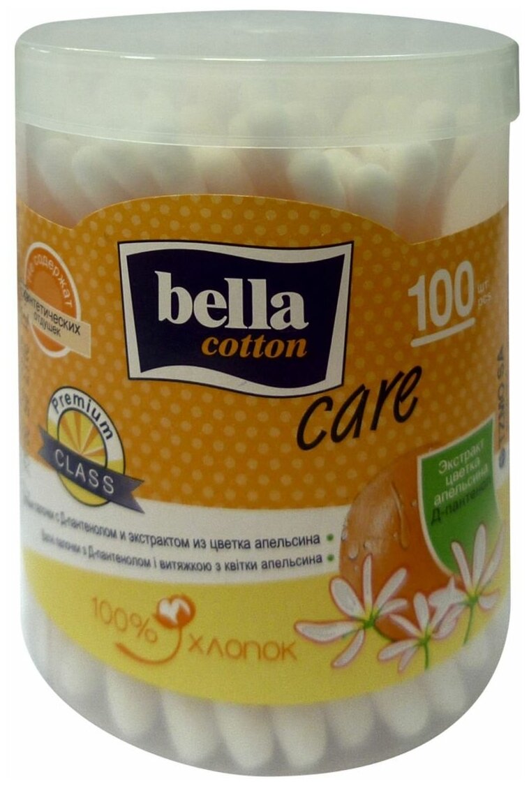 Ватные палочки Bella Cotton Care с Д-пантенолом и экстрактом из цветка апельсина, банка, 100 шт/уп. информация: