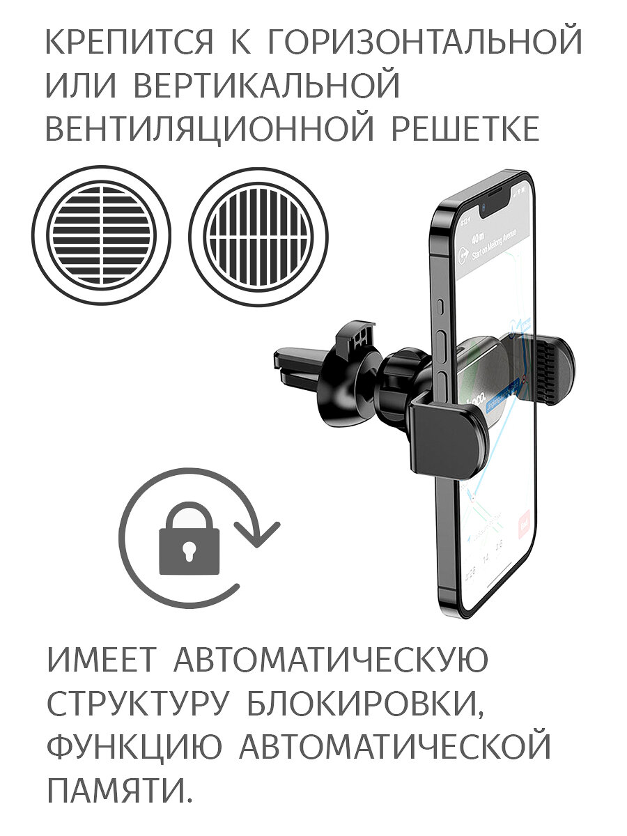 Автомобильный держатель HOCO CA108 Pilot auto, зажимной, на воздуховод, черный информация: