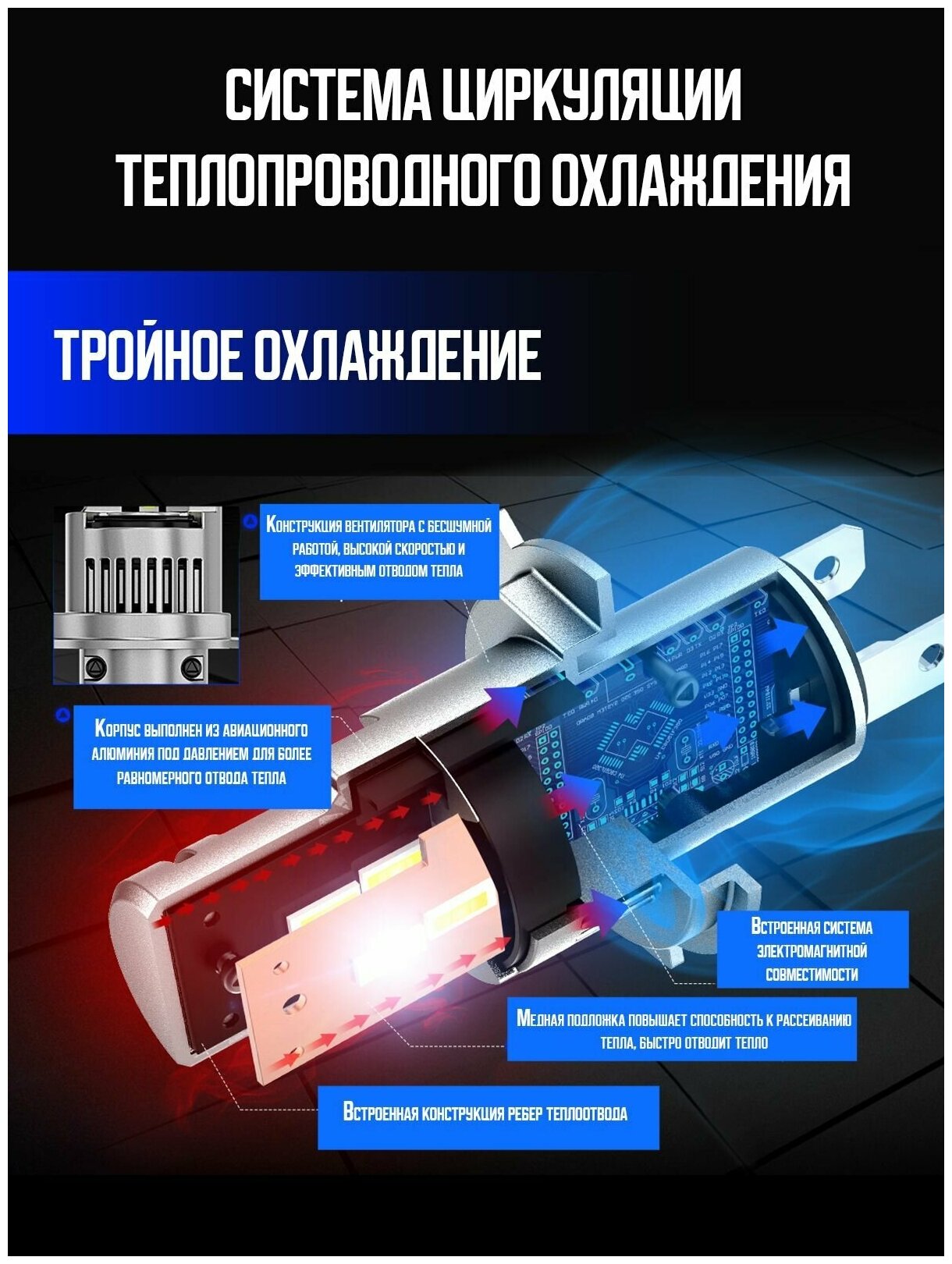 Светодиодная лампа Novsight N62 H11 цоколь PGJ19-2 100Вт 2шт 6500К 22000Лм белый свет LED автомобильная
