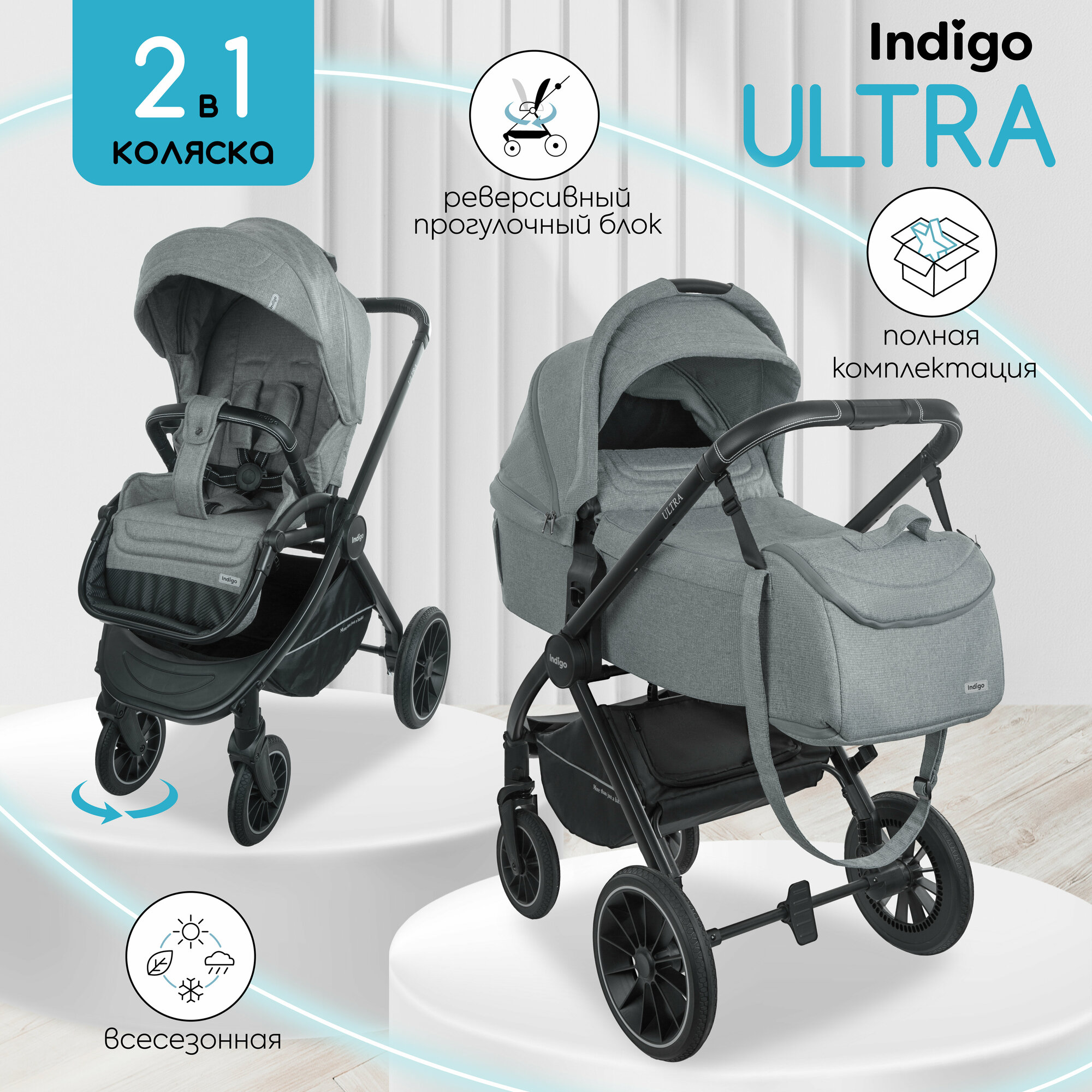 Коляска 2в1 Indigo ULTRA универсальная, всесезонная, серый информация: