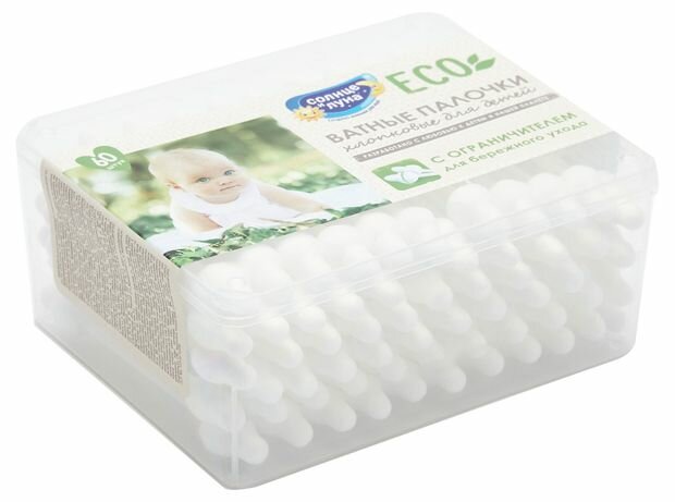 Ватные палочки солнце И луна ECO с ограничителем 0+, 60 штук 4607068628168