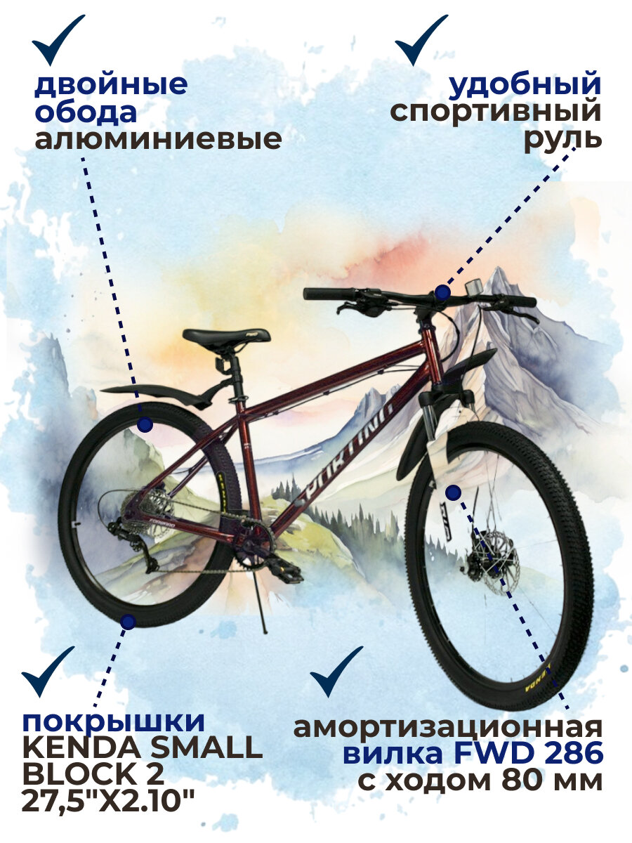 Велосипед FORWARD SPORTING 27,5 3.2 HD (27,5" 8 ск. рост. 19") 2023, темно-красный/серебристый 29 300 ₽