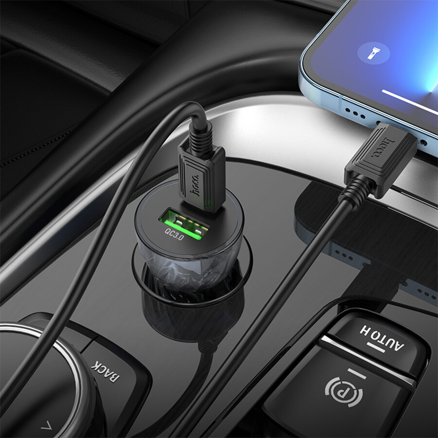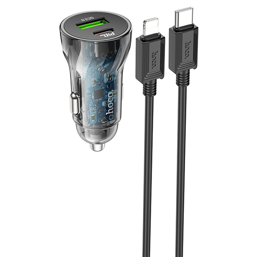 Автомобильное зарядное устройство с PD30W+QC 3.0, HOCO Z47A, кабель Type-C to Lightning, Black информация: