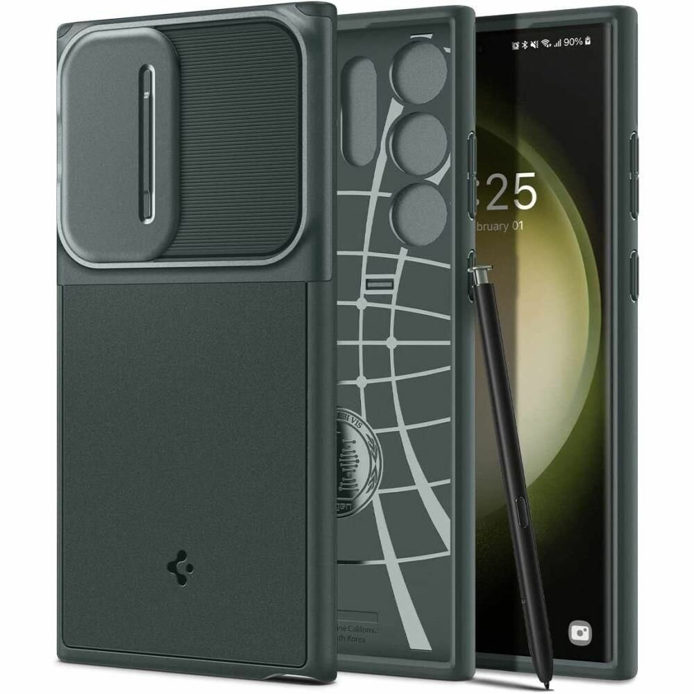 Чехол Spigen на Samsung Galaxy S23 Ultra (ACS06081) Optik Armor / Спиген чехол для Галакси С23 Ультра накладка, противоударный, с защитой камеры, зеленый информация: