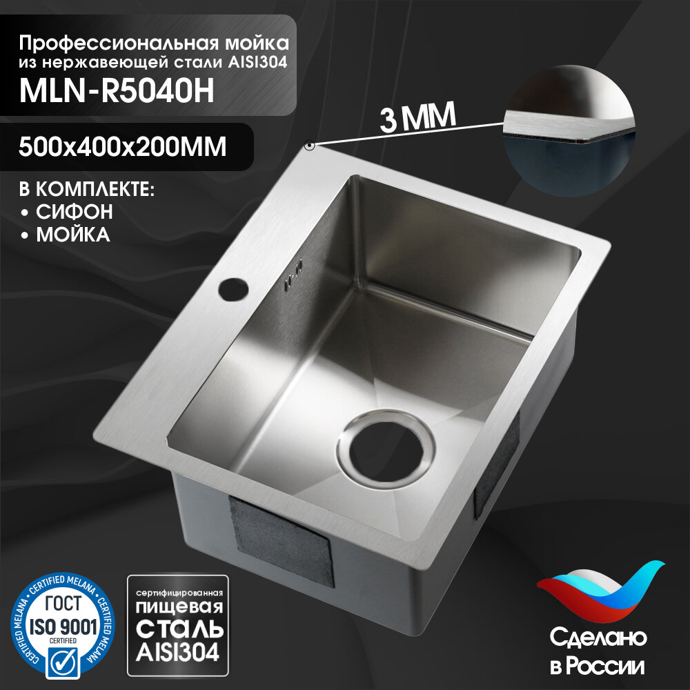 Мойка для кухни Melana ProfLine 500х400х200 мм врезная прямоугольная с сифоном сталь (R5040H) 22 008 ₽