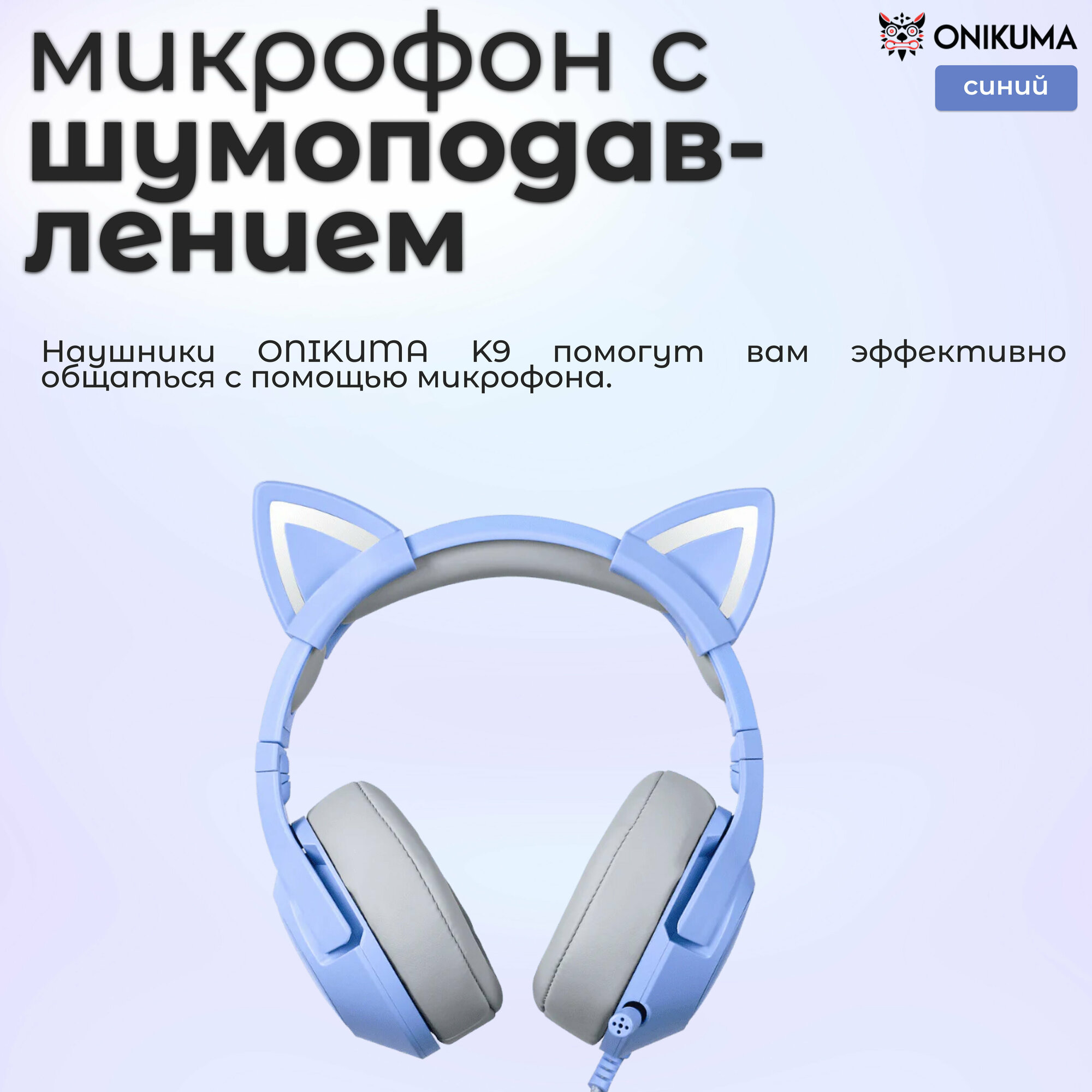 Игровые наушники с подсветкой ONIKUMA K9, игровая гарнитура со съемными ушками, голубые
