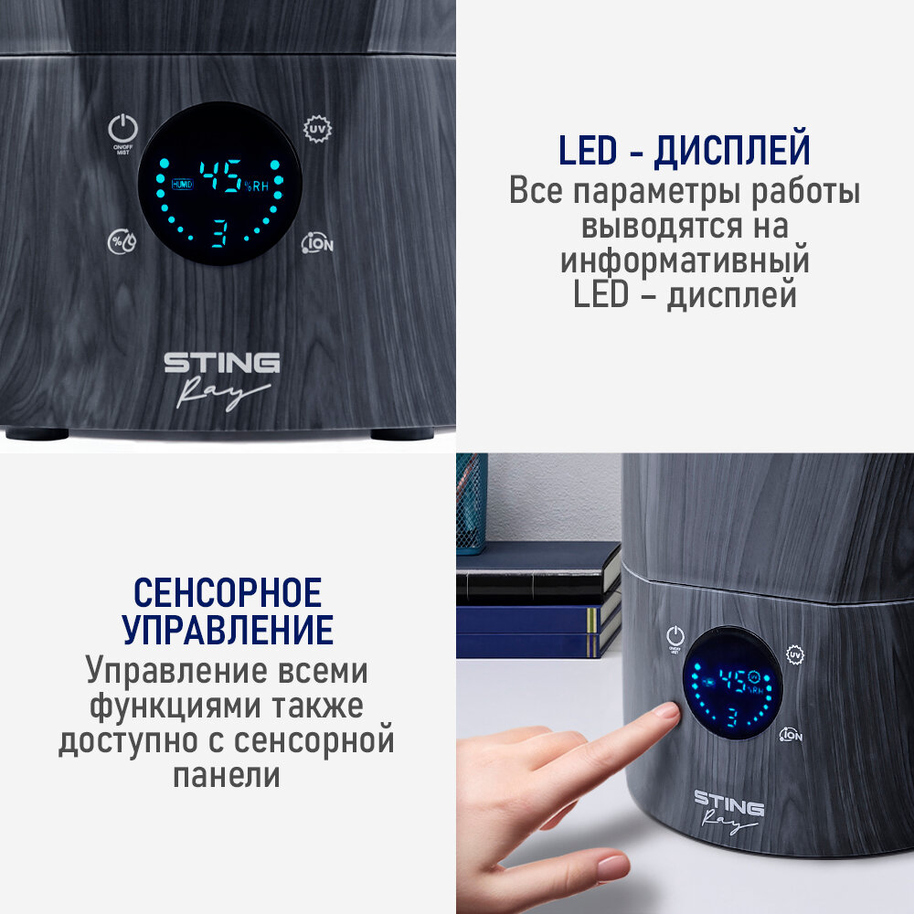 STINGRAY ST-HF507A черное дерево увлажнитель воздуха с антивирусной УФ-лампой информация: