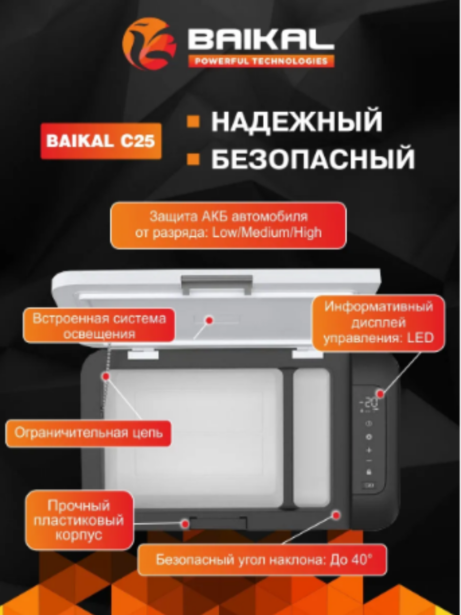 Отзывы на Автохолодильник компрессорный BAIKAL C25 (25 литров, 45 Вт) однокамерный