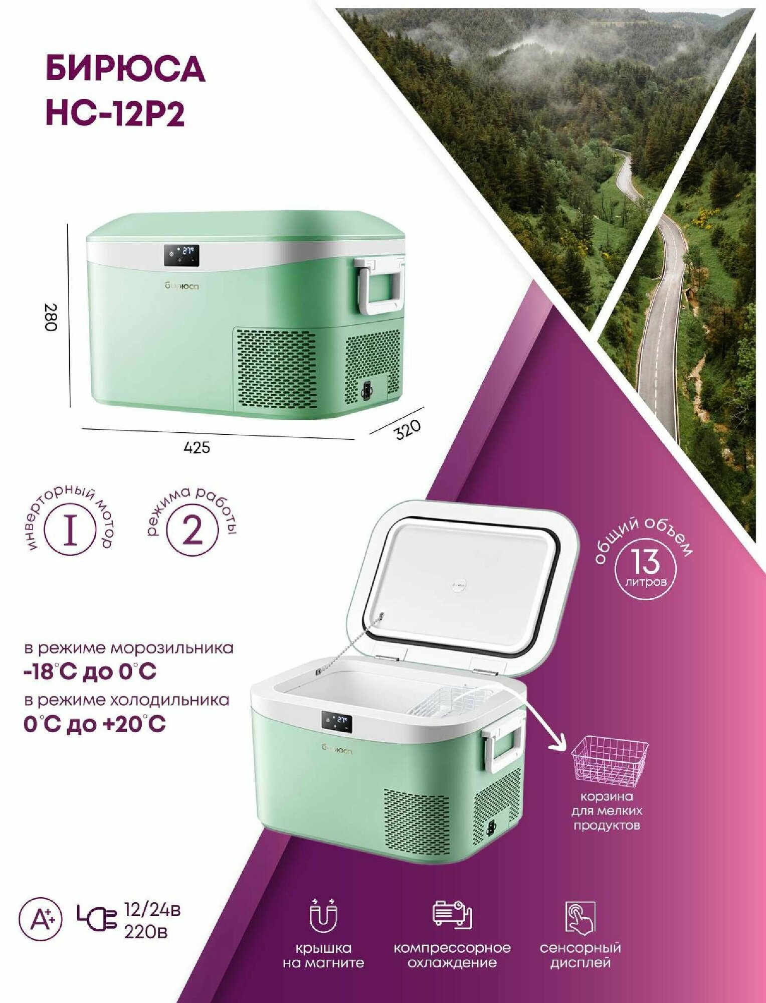 Мобильный холодильник Бирюса НС-12Р2 информация: