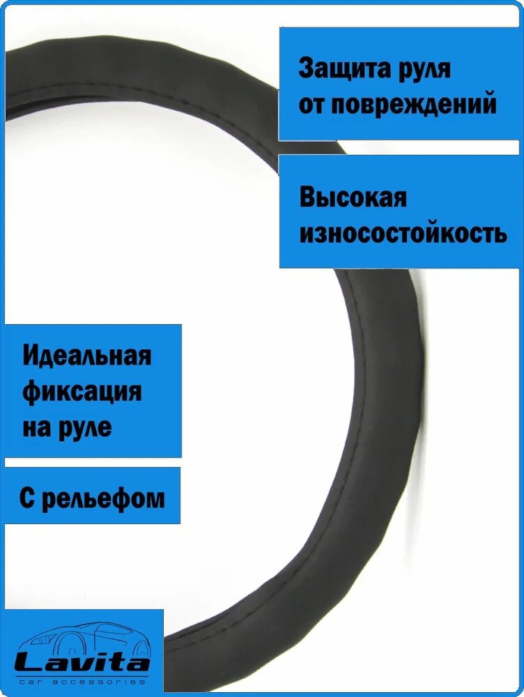 Отзывы на Оплетка на руль M 37-39см ПВХ черная ребристая LAVITA LA 26-2117-1-M