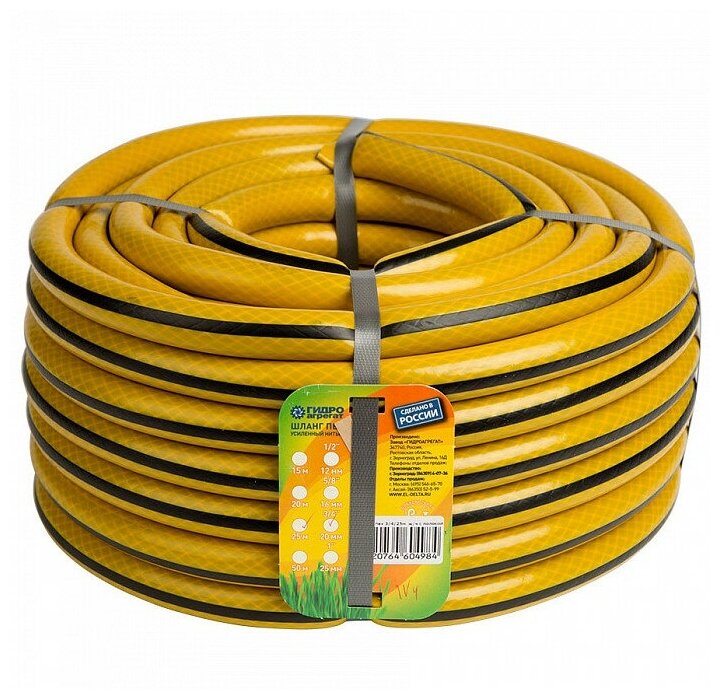Шланг поливочный Д=3/4" (25м) арм., 3-х слойный Гидроагрегат желтый с черной полосой информация:
