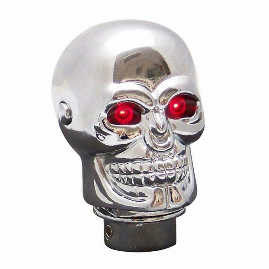 10 цен на Универсальная рукоятка на рычаг КПП Терминатор Красные глаза стальная / Ручка переключения передач Череп Terminator с красной подсветкой