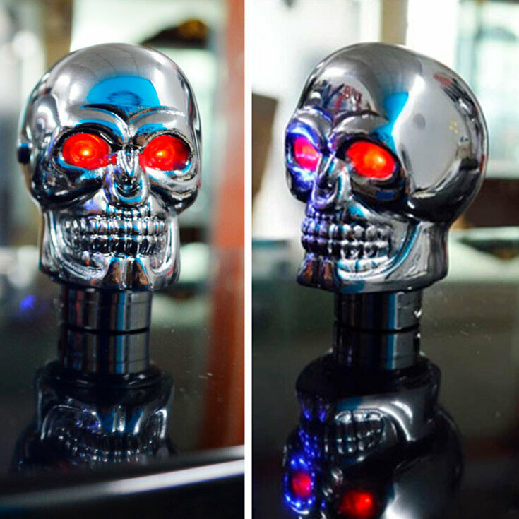 Отзывы на Универсальная рукоятка на рычаг КПП Терминатор Красные глаза стальная / Ручка переключения передач Череп Terminator с красной подсветкой