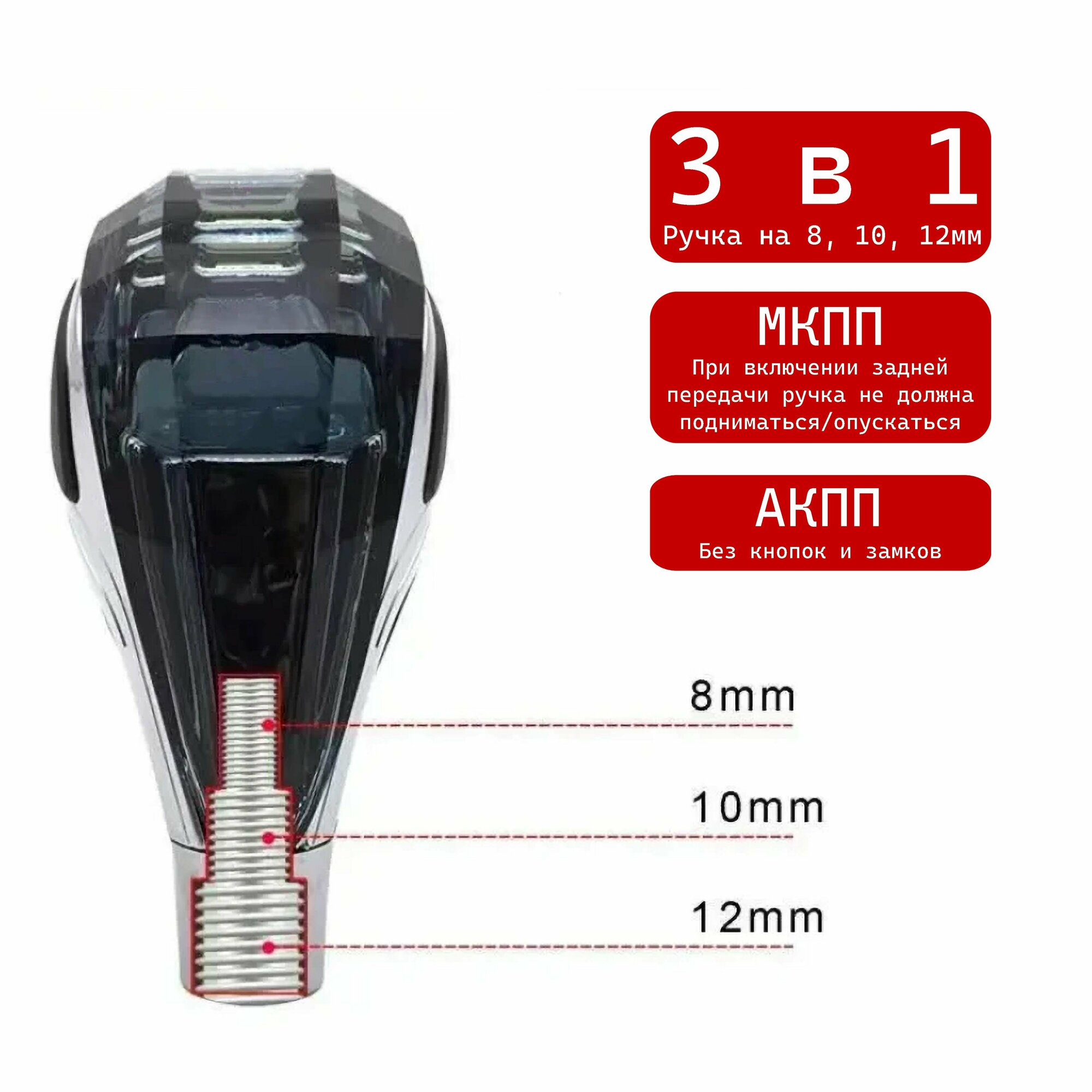 Ручка КПП хрусталь с логотипом на Mitsubishi и RGB подсветкой (7 разных цветов) информация: