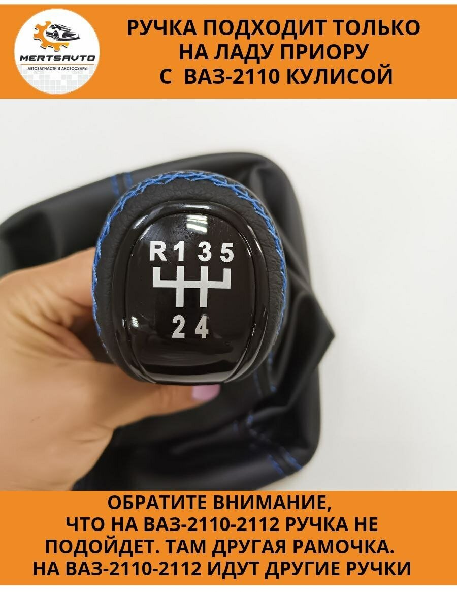 Отзывы на Ручка КПП с чехлом в стиле Весты на ВАЗ-2170 Лада Приора (Lada Priora) с ВАЗ-2110 кулисой (вставки "черный лак", синяя строчка)