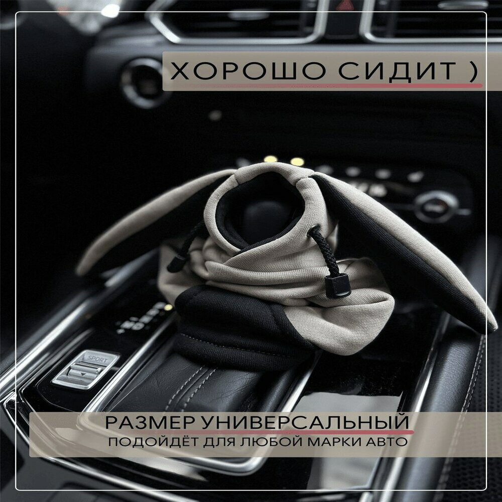 Отзывы на Универсальный чехол на ручку КПП , аксессуар чехол-худи, серо-черный с ушами