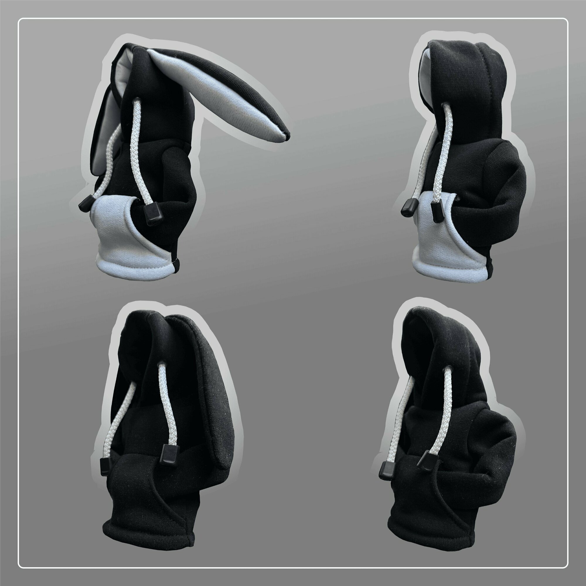 Универсальный чехол на ручку КПП , аксессуар чехол-худи, бело-черный с ушами 650 ₽