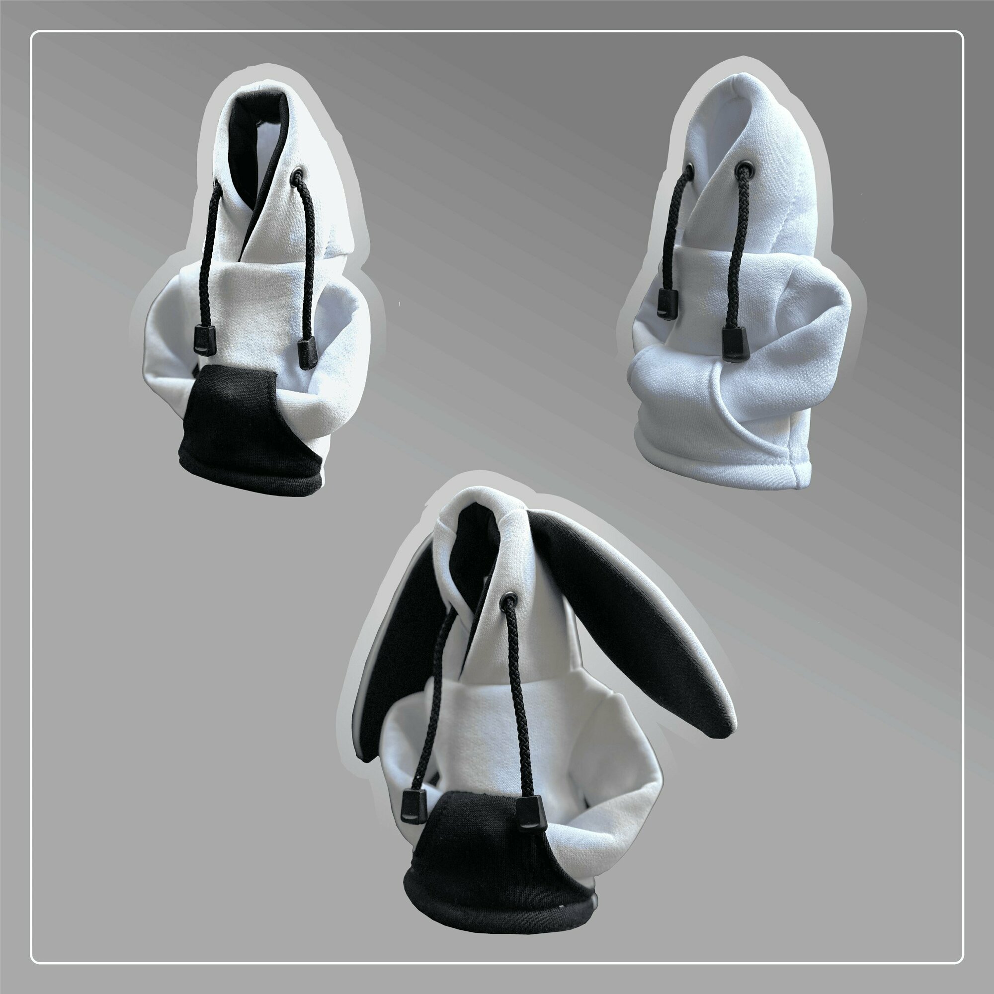 Универсальный чехол на ручку КПП , аксессуар чехол-худи, бело-черный с ушами 650 ₽