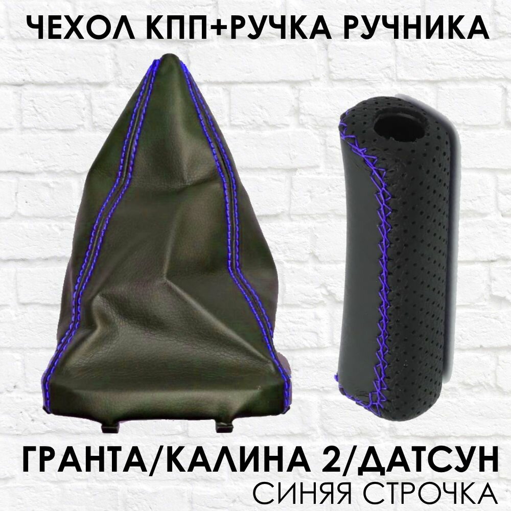 Чехол КПП и Ручка ручника Гранта, Калина 2, Датсун синяя строчка информация: