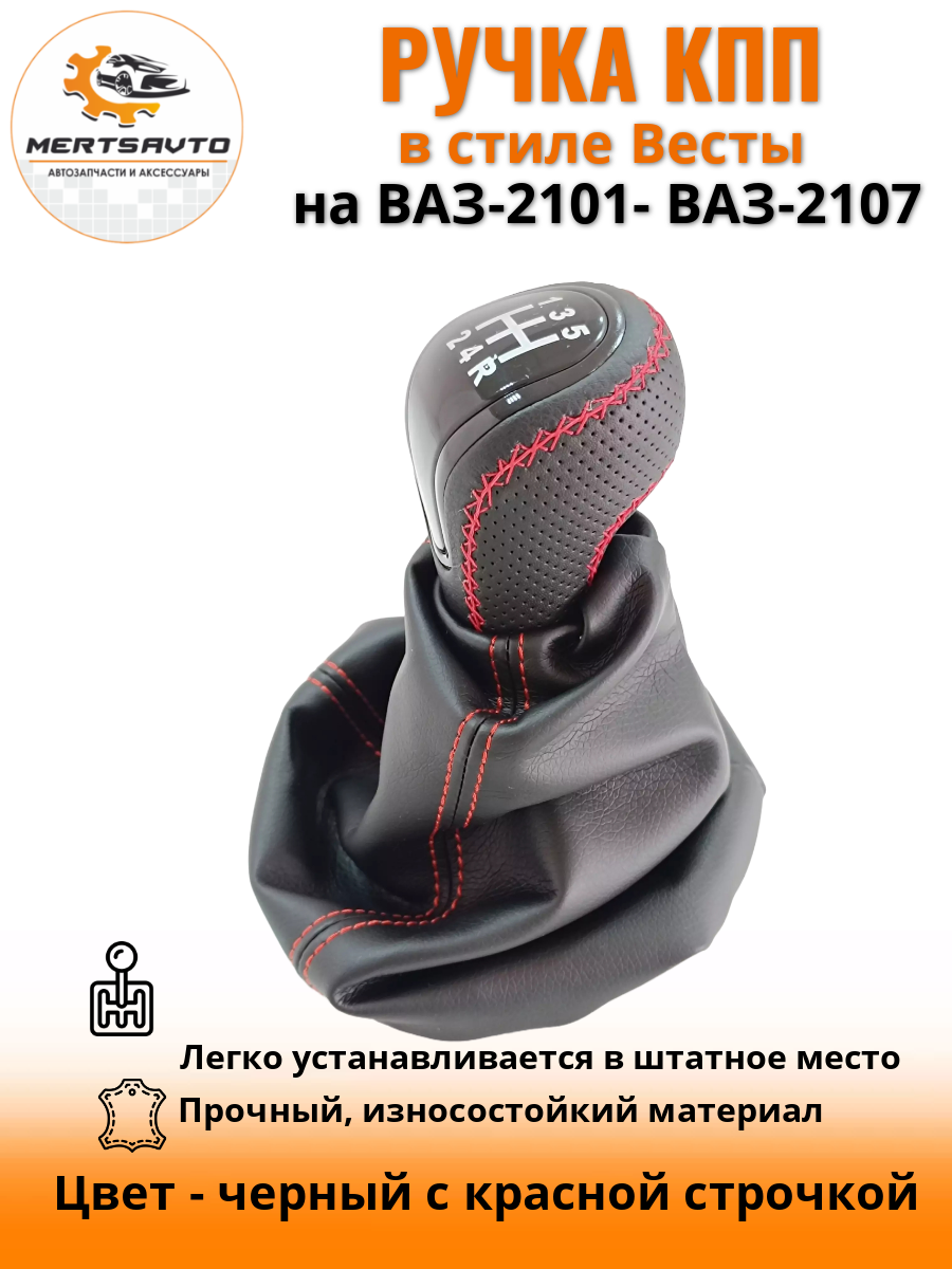 Ручка КПП с чехлом пыльником в стиле Весты на классику: ВАЗ-2101-2107-черный с красной строчкой "лак" информация: