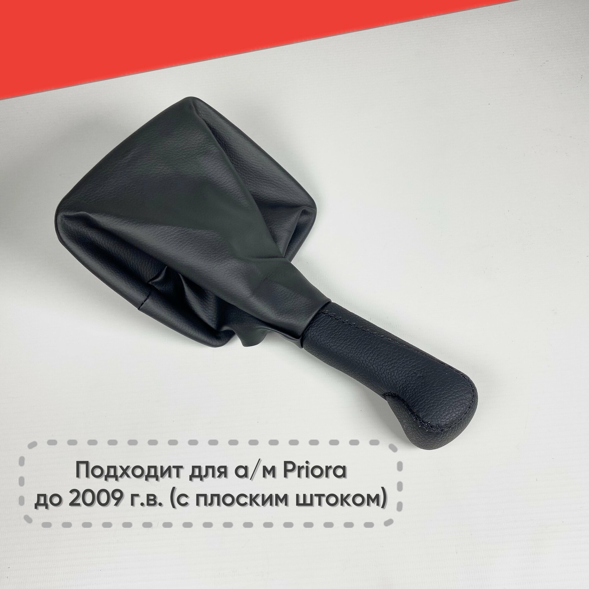 Ручка КПП экокожа на ВАЗ 2170 - 2172 Priora, плоский шток, черная строчка / Ручка КПП с кожухом для а/м Приора информация: