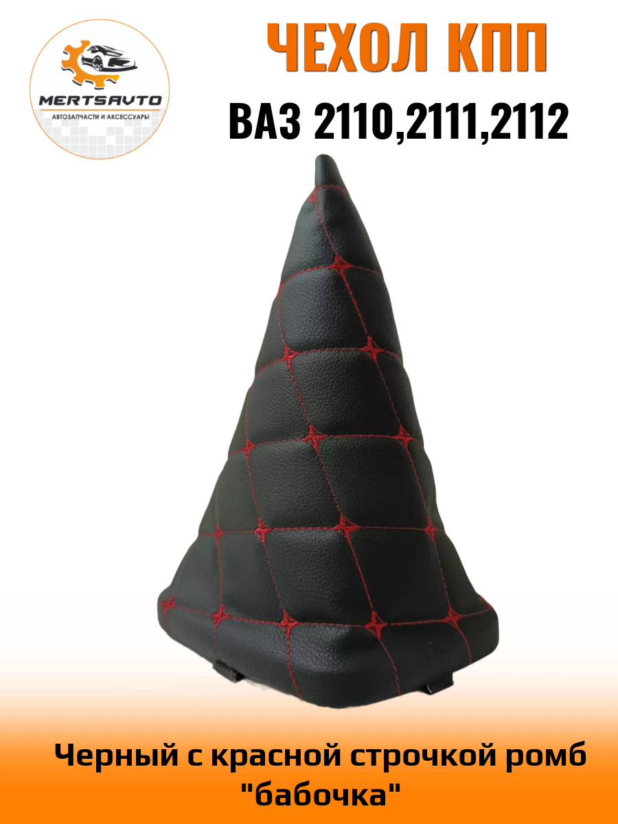 10 цен на Чехол коробки переключения передач (КПП) на ВАЗ-2110, ВАЗ-2111, ВАЗ-2112 (Lada, Лада) - черный с красной строчкой ромб "бабочка"
