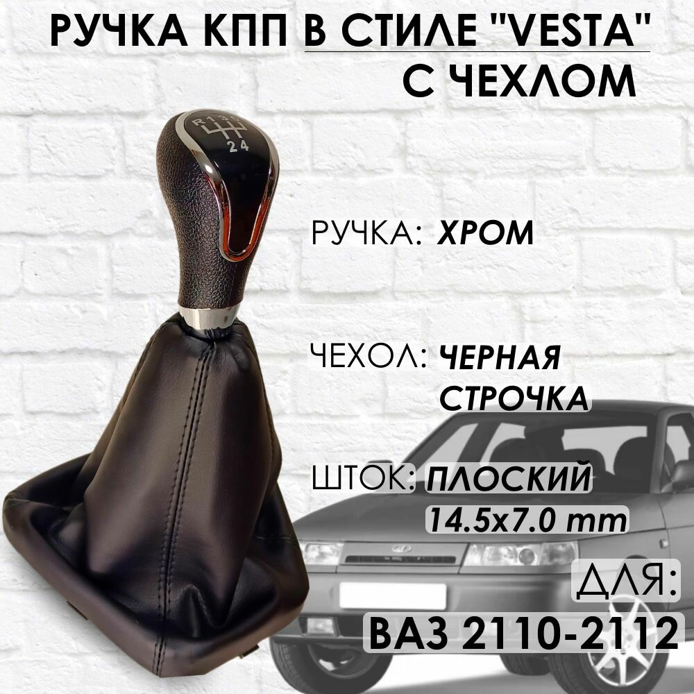 Ручка КПП с чехлом ВАЗ 2110-2112 "Веста стиль" (Хром/черная строчка) информация: