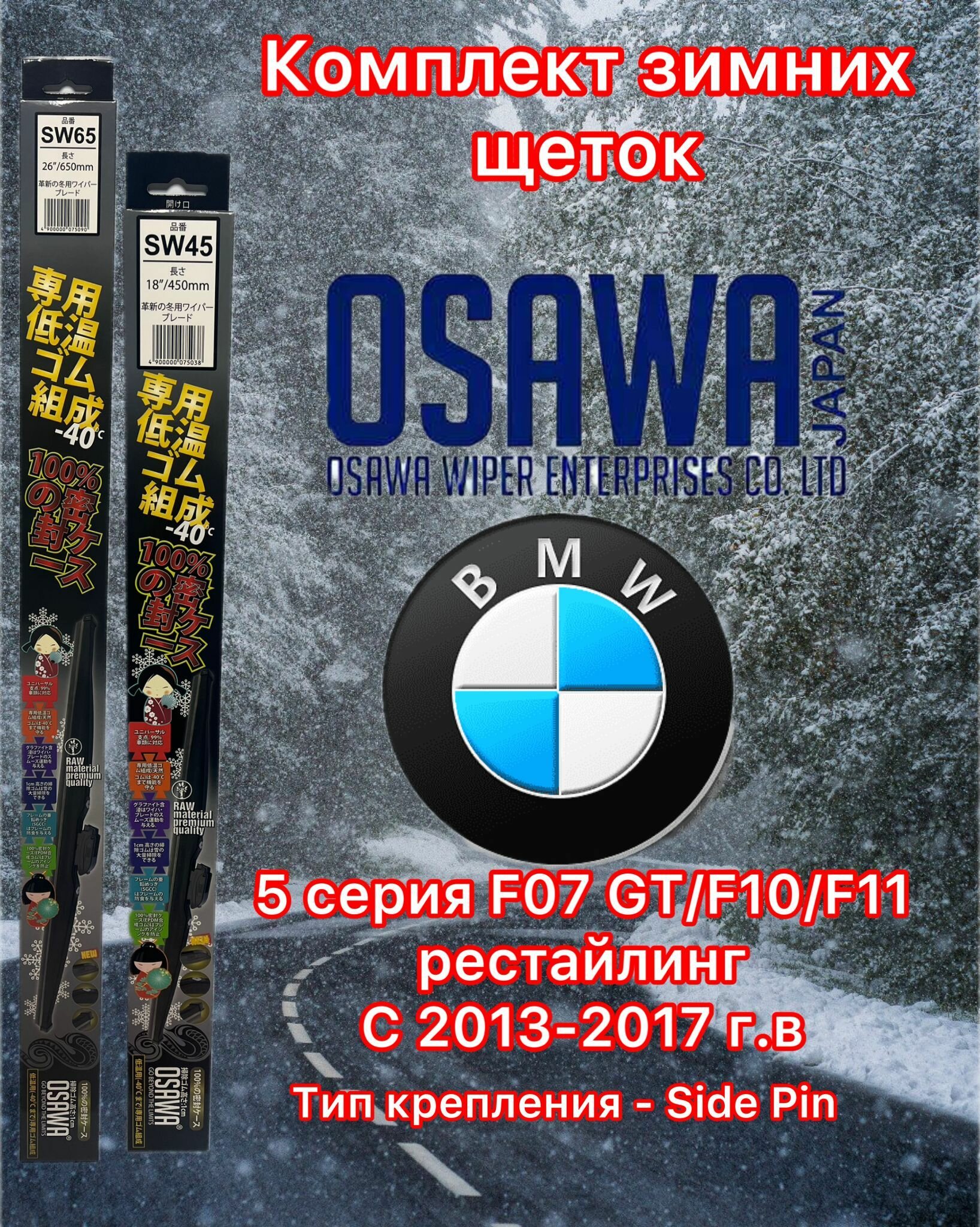 Щётки стеклоочистителя зимние Osawa для BMW 5 серия F07 GT/F10/F11 рестайл (2013-2017) (крепление Side Pin) информация:
