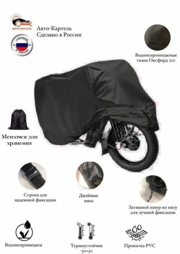 Чехол-тент на мотоцикл 265х105х130 см, водонепроницаемый, черный информация: