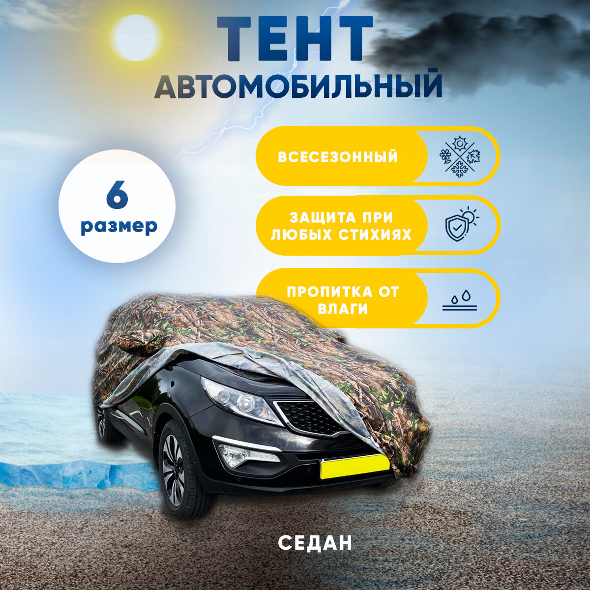 Отзывы на Тент автомобильный Защитные тенты РФ, размер чехол на машину седан, тёмный лес, р-р 6, 500х190х150 см