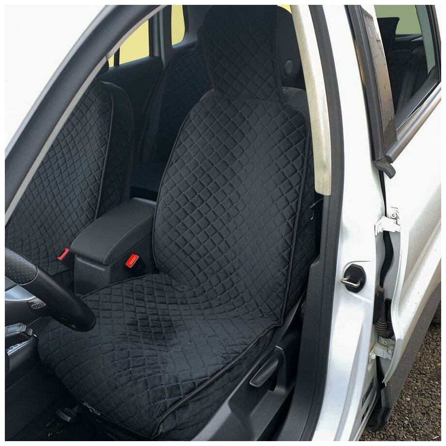 Отзывы на Накидки на передние сиденья автомобиля, черные с синим кантом (велюр в ромбик), 2 шт.