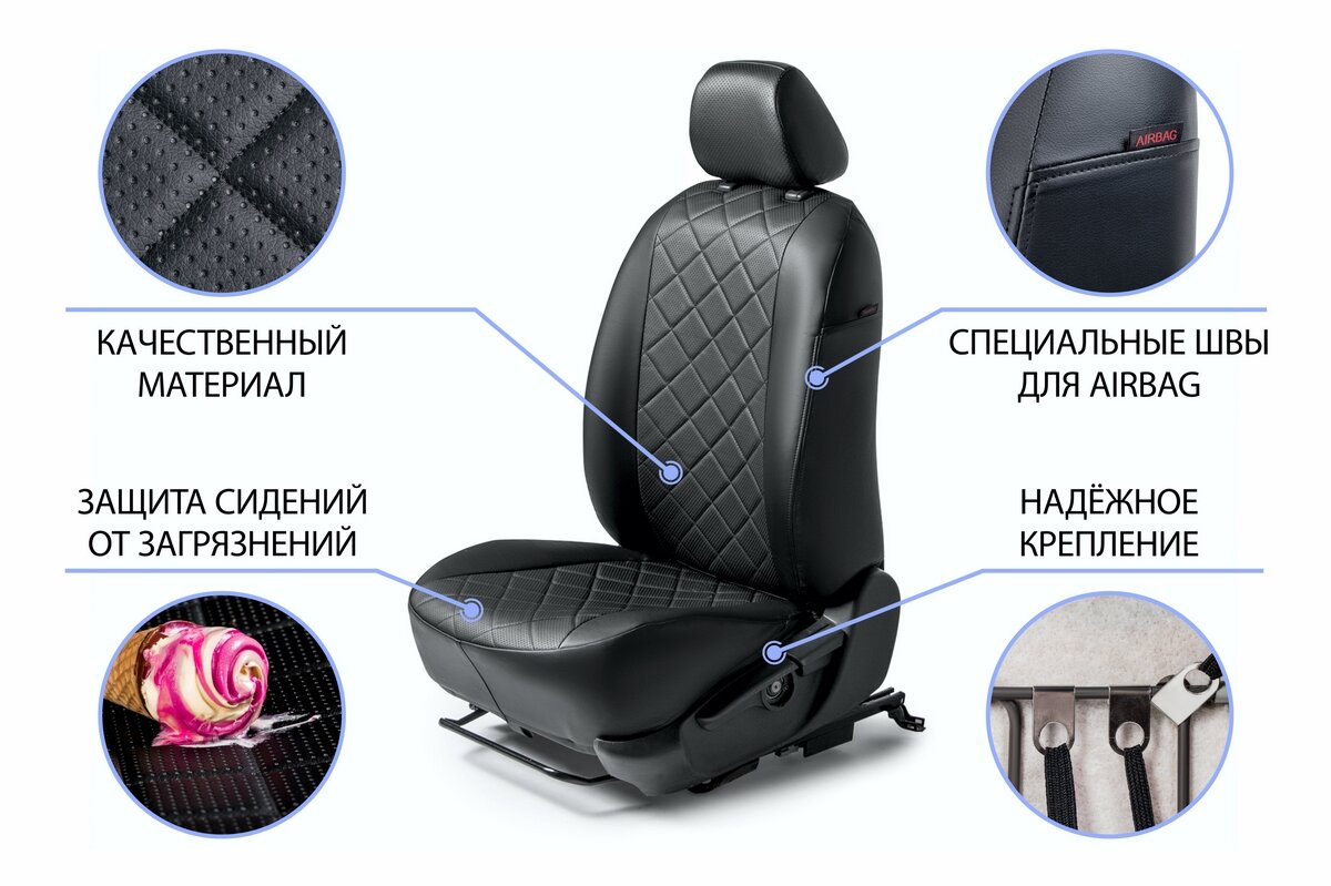 Авточехлы Rival Ромб (зад. спинка 40/60) Chevrolet Lacetti седан, хэтчбек, универсал 2004-2013/Ravon Gentra I седан 2015-2018, эко-кожа, SC.1003.2