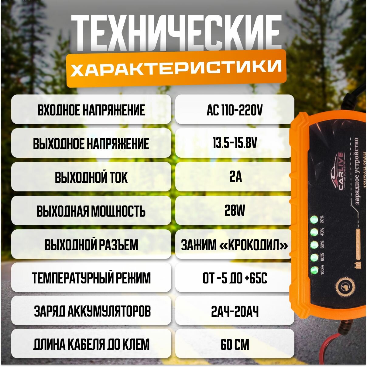 Зарядное устройство для аккумуляторов 12V 2A до 20Ah c индикацией заряда информация: